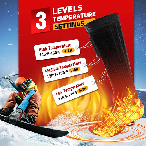 Heated Socks, Winter Warm Socks for Men Women with 3 Heating Settings, Washable Electric Thermal Socks with 2pcs 4000mAh Rechargeable Battery for Hiking Biking Skiing Hunting Outdoor Work